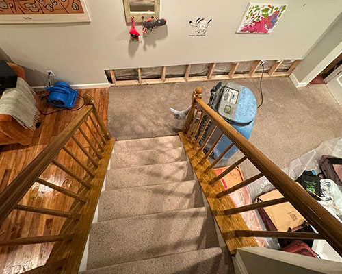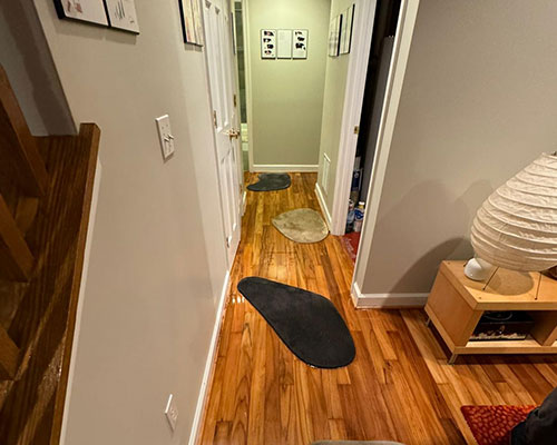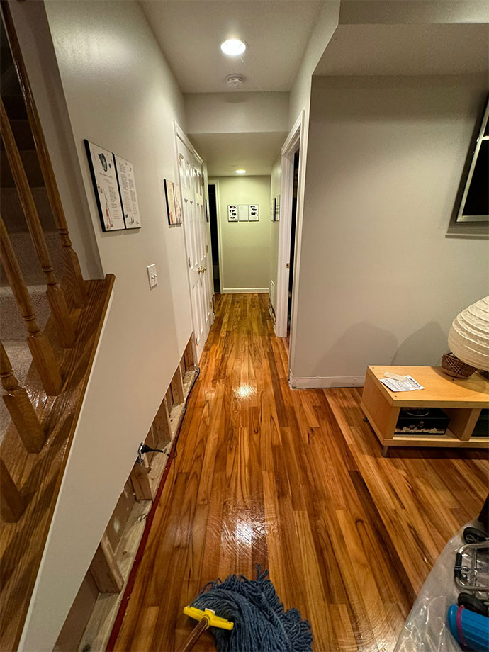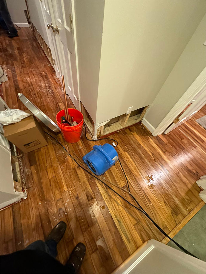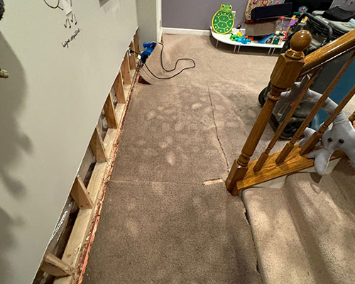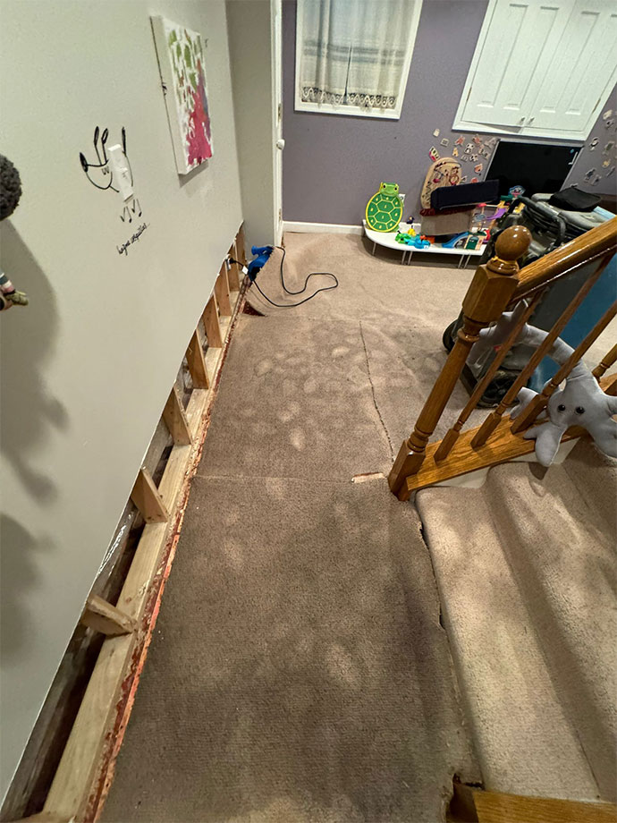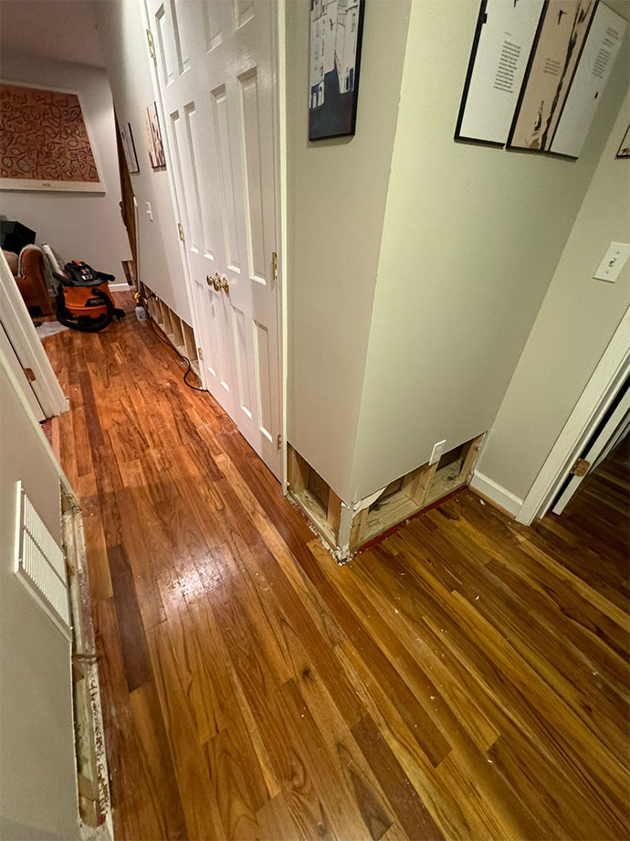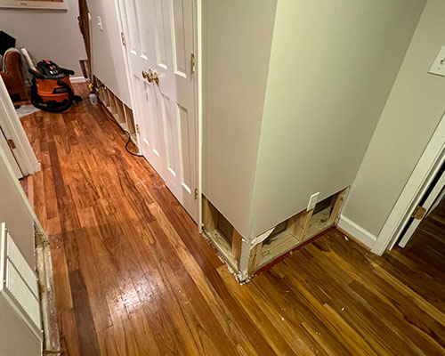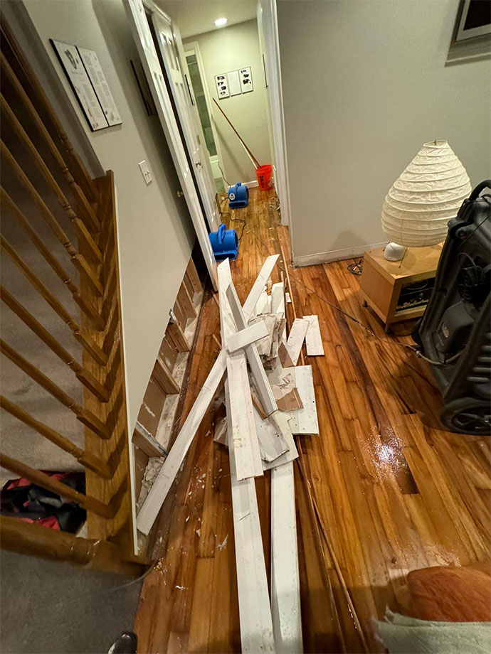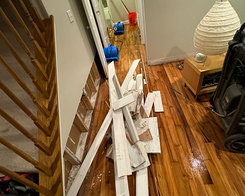 - - Baseboard Removal: Damaged baseboards were carefully removed to expose hidden moisture and ensure complete drying.