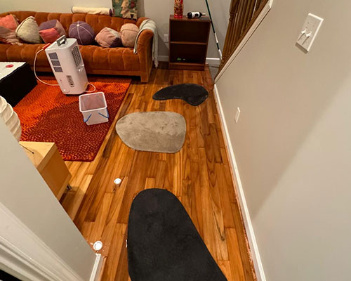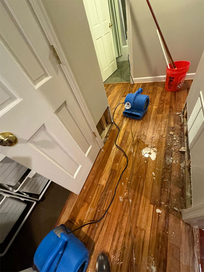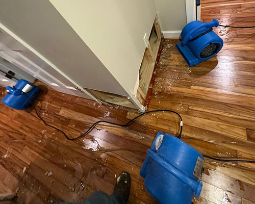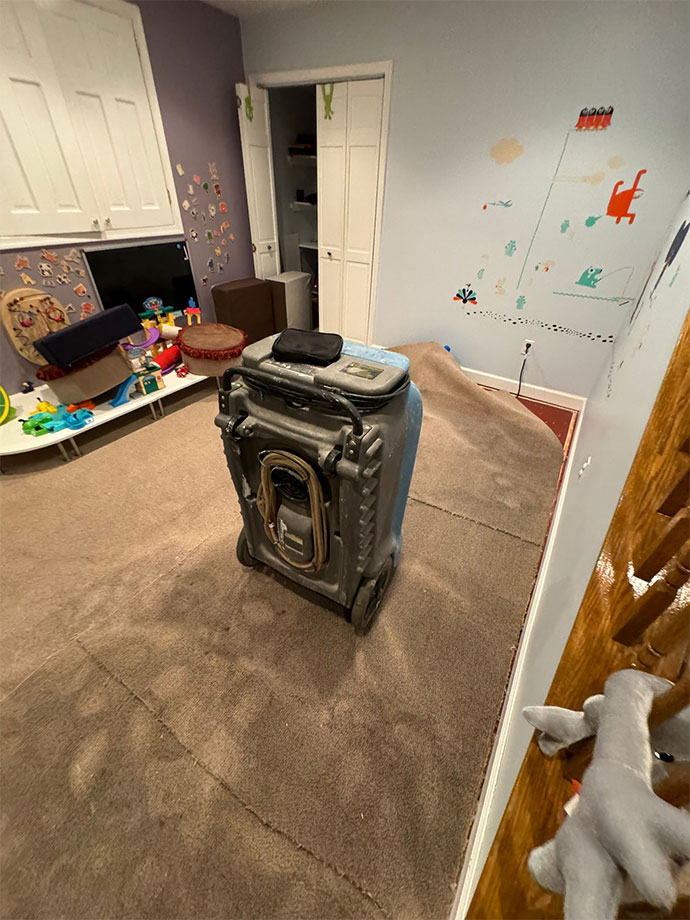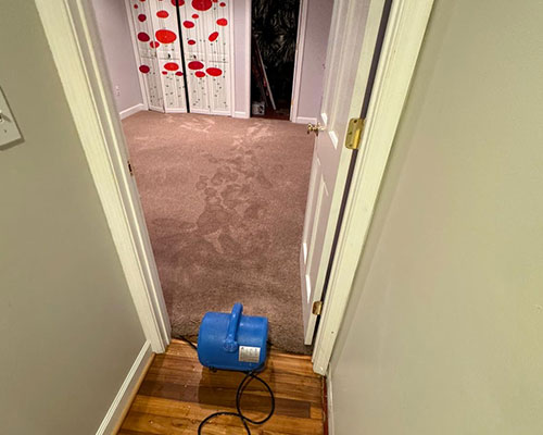 - Four air movers were deployed to enhance air circulation and expedite drying.