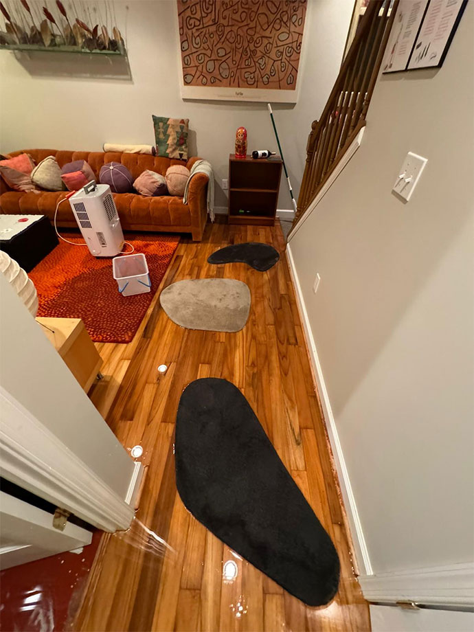 - - Water Extraction: Immediate extraction of standing water from the affected areas was carried out to minimize further damage.