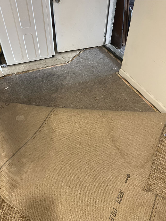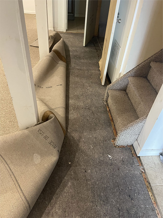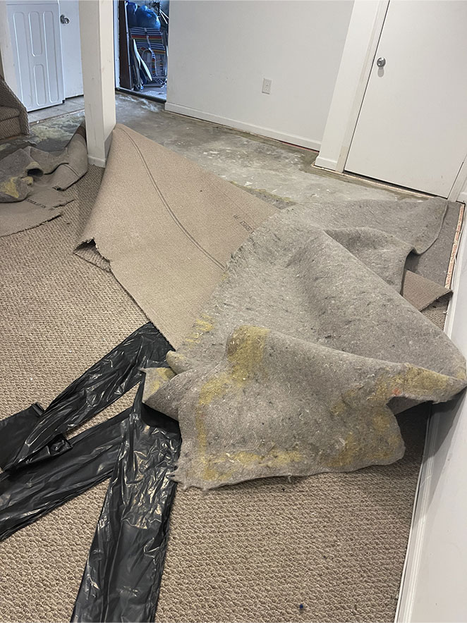 - Pad and Carpet Removal: recognizing that wet pads and carpets can harbor bacteria and mold, we removed these items as a necessary step toward a complete restoration.