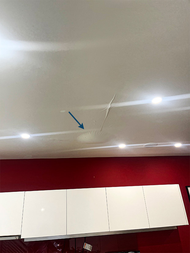 When our office took the first call, the homeowner described a growing bulge in the kitchen ceiling, with active dripping from the bathroom above. She asked what many clients ask us in similar situations: "Is it safe for me to stay here?". Our coordinator advised immediate inspection and reminded her that stopping the source comes first.