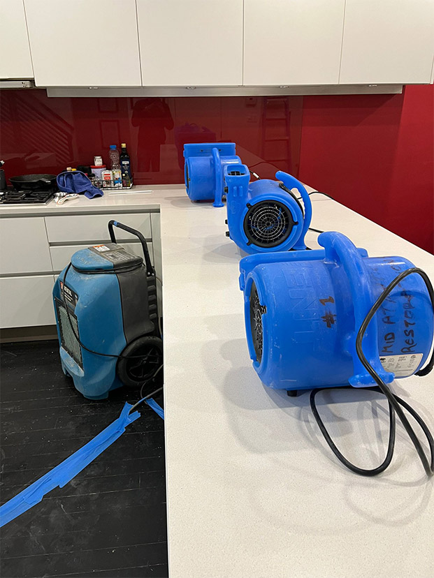 After 72 hours, readings returned to normal and matched our baseline. Odor concerns were resolved, and the kitchen was reconstruction-ready. We delivered full documentation before/after meter logs, equipment runtime, demolition scope, and antimicrobial application notes, so the tenant and landlord had everything needed for records or insurance. Early intervention and controlled drying minimized secondary damage, keeping overall water damage restoration cost predictable.