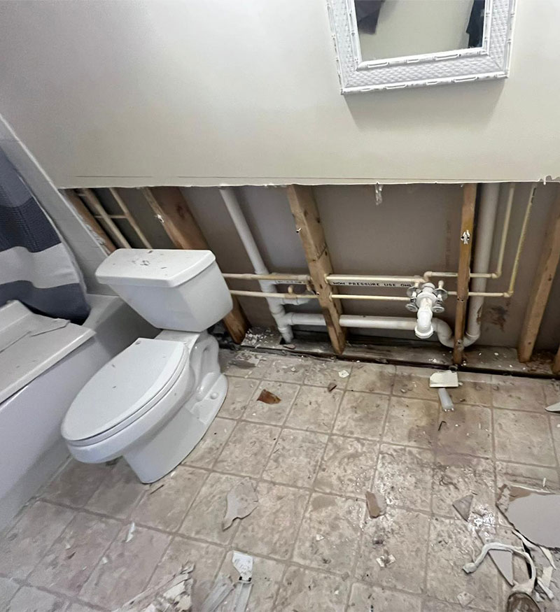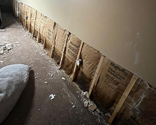 - Water Damage Restoration - Drywall removal: Main level unit bedroom drywall cut.